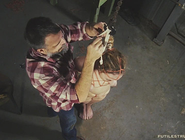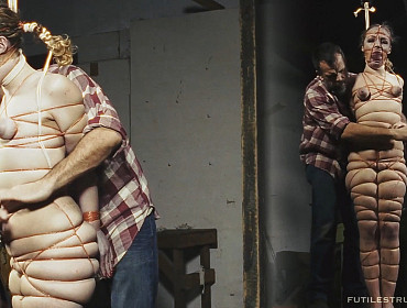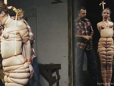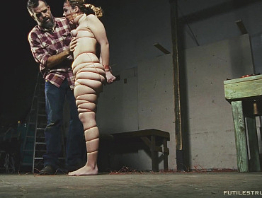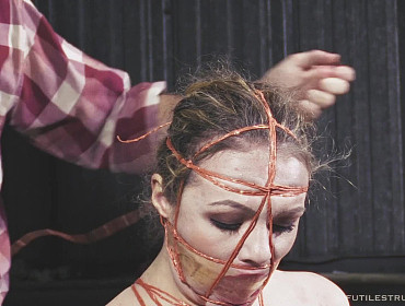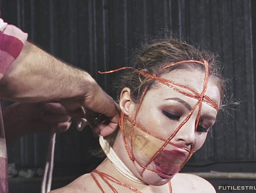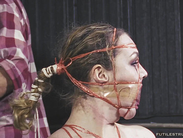 This Episode starts where Episode 3 ended. After I finish tying up the loose ends of her face bondage, I stand her back up, so I can get her arms bound in a similar fashion, as her legs. This is where Episode 4 ends.