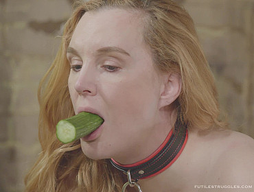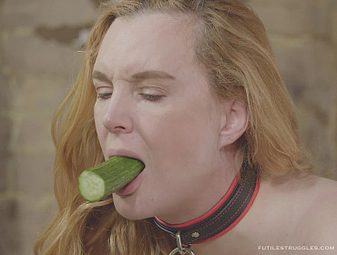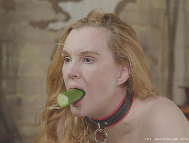This Episode starts where Episode 3 ended. Ariel knows to stop and hold a hands and knees position. She waits with a zucchini in her mouth. She is eventually taken over to the Dildo for training. This is where Episode 4 ends.