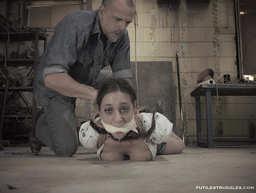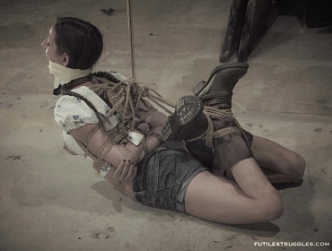 This Episode starts where Episode 3 ended. Trixie endures her hogtie for a while, before I release her. She stays on her stomach and I leave her arms bound behind her back. Her legs are spread, as I strap her ass and legs. After I'm done, I completely untie her and I order her to her knees. This is where Episode 4 ends.