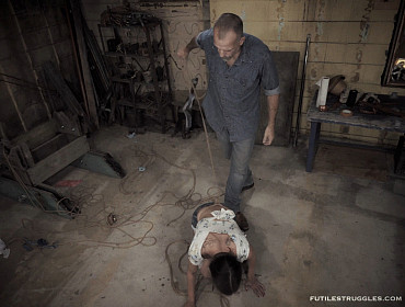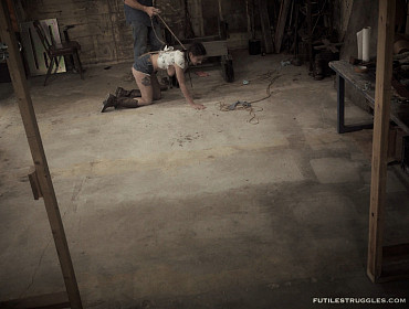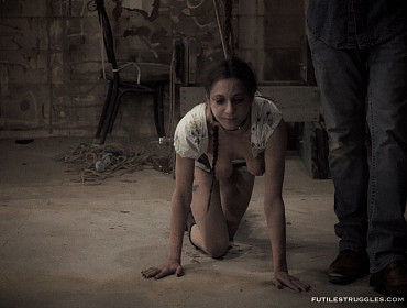 This Episode starts where Episode 9 ended. Trixie endures her predicament for a while longer. I return to give her some of my special attention, before releasing her. I keep her leashed as she crawls around picking up the ropes on the floor. She is told to get into and stay in position. This is where Episode 10 ends.