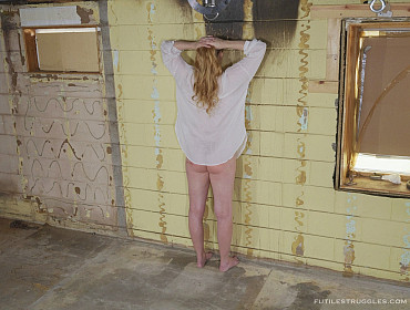 This Episode starts a new series. Ariel has been instructed to visit. She walks barefoot down a long gravel drive and ends up facing a concrete wall with her nose and feet touching. I eventually pull her away from the wall and administer a hand strapping. This is where Episode 1 ends.