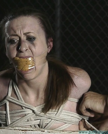 As Told by Serene This clip starts where Part 1 ended... He picks me up and seats me on the chair backwards, with my legs through the arms of the chair. He walks away, but soon returns. He gags me again. He cleave gags me with an entire roll of vetwrap. As if that wasn't enough, he adds more wraps of wide black tape. He continues wrapping the black tape all over my head. This is a very effective gag. I have so much pressure on my jaw that trying to talk would make it way worse. As I sit in agony, mostly from the gag at this point, he starts tying up my right tit! He removes the gag and disappears for a few minutes. Sure enough, he returns and tightly tapes a huge sponge in my mouth. This gag is not near as bad as the last, but I get the feeling he's not done with it yet. The strange man, ties my other tit and then adds more rope, further securing me to the chair. My right ankle is pulled up and tied to the arm of the chair as well. He goes and sits down in the darkness and watches me struggle and moan for a while. Just as I thought. He gets up and starts adding more layers to my gag. First he wraps my head in clear tape. He then completely wraps my head in red electrical tape. I am now in complete darkness, and cannot hear a thing. I leather panel harness is strapped on my head right over all the tape. The man in the lab coat then walks away once again. He returns again. He gropes my bound tits and spins me around in the chair as I moan in agony and confusion. He walks away into the darkness for the last time. I wake up shortly after. The really weird thing is that I had fresh rope marks!!