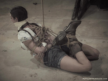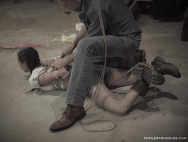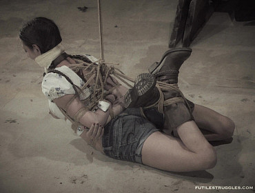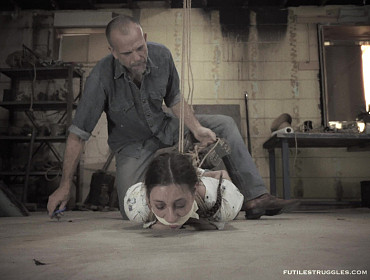 This Episode starts where Episode 3 ended. Trixie endures her hogtie for a while, before I release her. She stays on her stomach and I leave her arms bound behind her back. Her legs are spread, as I strap her ass and legs. After I'm done, I completely untie her and I order her to her knees. This is where Episode 4 ends.